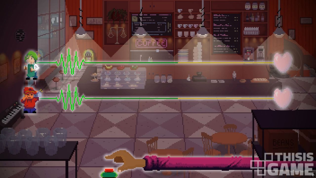 각종 미니 게임과 콜라보에 대한 언급도 빼놓을 수 없다. 수시로 변하는 박자를 따라 커피콩을 뛰어넘어 높은 점수를 노리는 커피콩 상자 뛰어넘기, 양손의 박자를 유지해 덤벨을 무사히 들어 올리는 리듬 역도는 리듬과 박자라는 소재에 충실한 게임 디자인으로 깨알 같은 재미를 선사한다. 한편, 게임 본편에도 어느 정도 <리듬 천국> 시리즈의 오마주가 담겨있는데, 이 미니 게임에서 그런 오마주가 좀 더 뚜렷하게 드러난다.