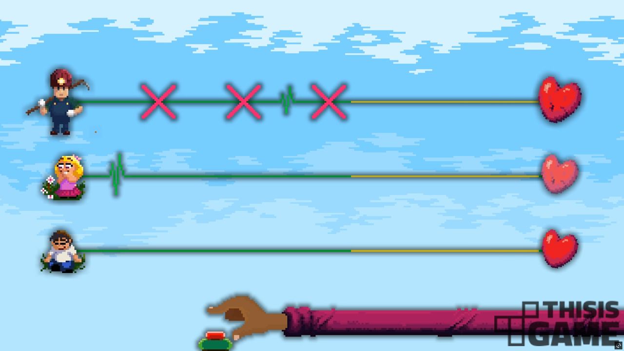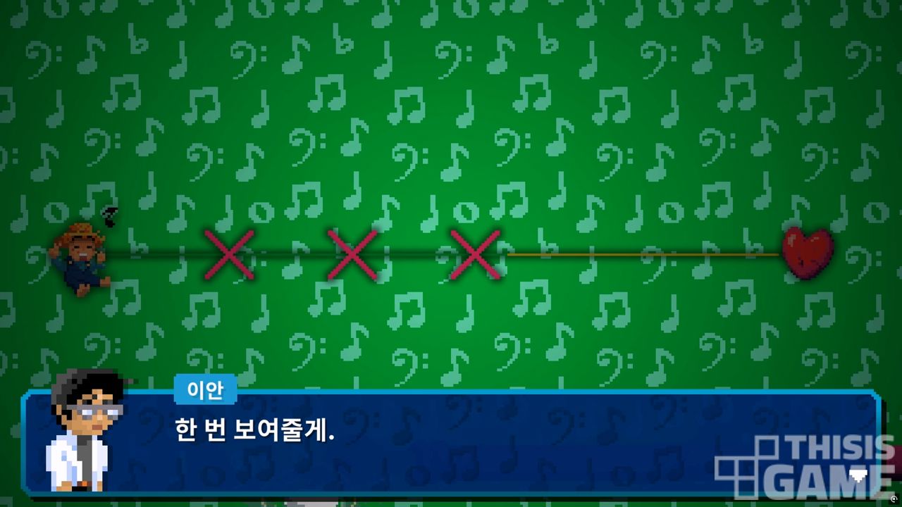 이걸 어떻게 해결하면 좋을까? 우선 음악 연주 도중 잠시 쉬어가는 구간을 두는 걸 생각해 볼 수 있다. 물론 이러면 이야기 전달은 잘 되겠지만, 음악 연주를 멈추게 되니 마땅히 게임의 흐름이 끊기게 된다. 혹은 음악 연주를 살짝 방해하는 한이 있더라도 스토리 묘사를 더 뚜렷하게 드러내는 방법도 있을 것이다. 이 경우에는 연주의 방해로 인한 불쾌감 유발은 어쩔 수 없겠지만 말이다.