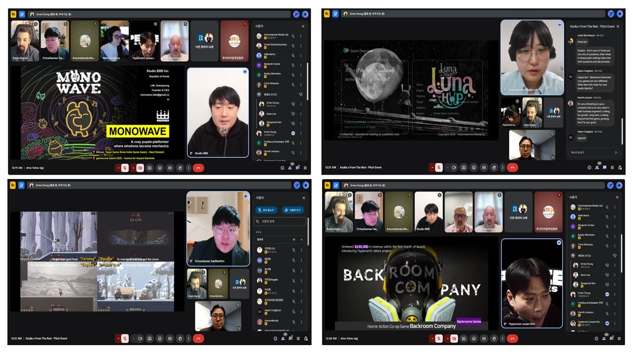 온라인으로 진행된 이날 행사에는 <2025 인디크래프트> 국내/커뮤니티 부문 선정작 중 치열한 경쟁을 뚫고 선발된 4개 선정사가 참여해 해외 투자 유치 및 진출을 위한 열띤 경쟁을 펼쳤다.