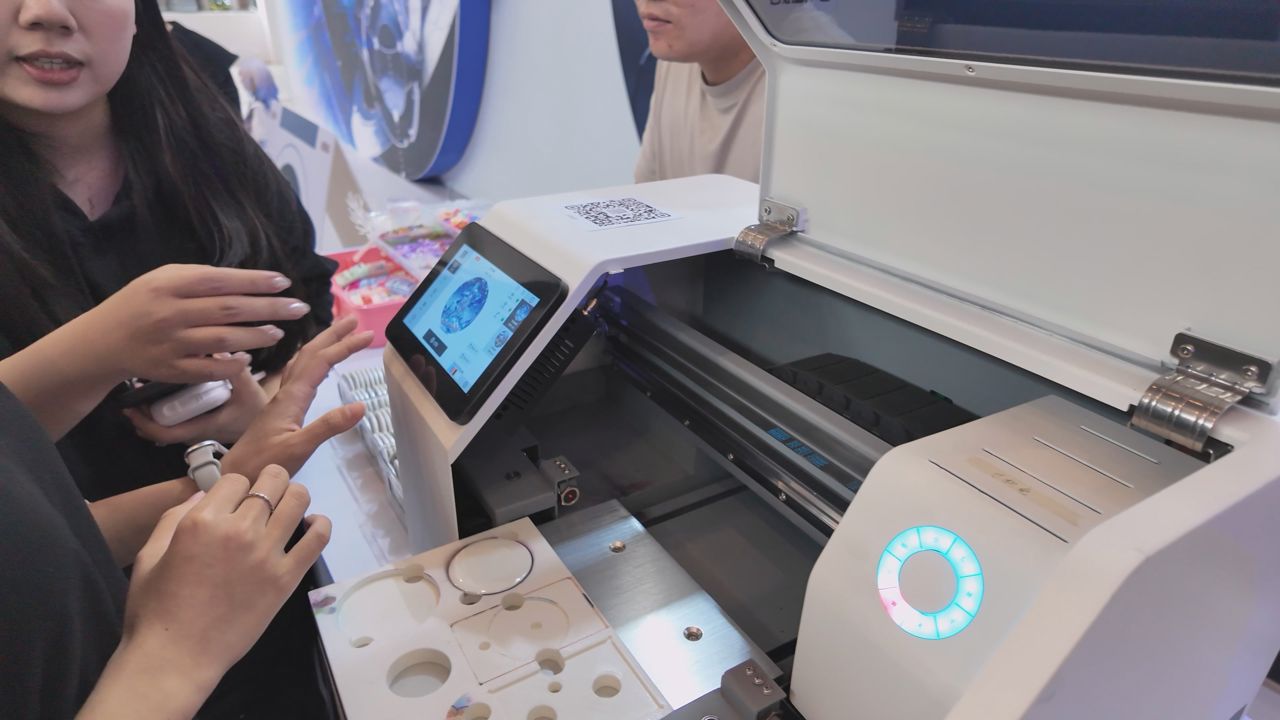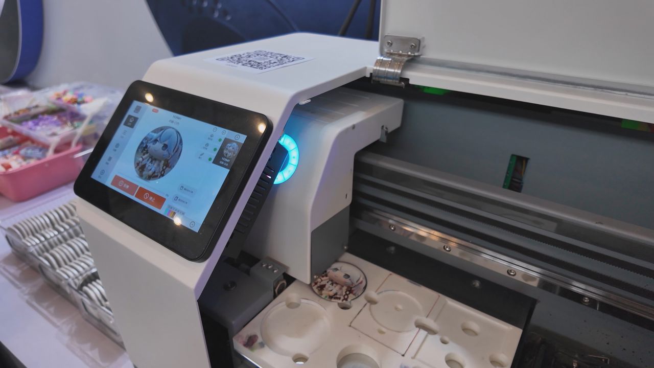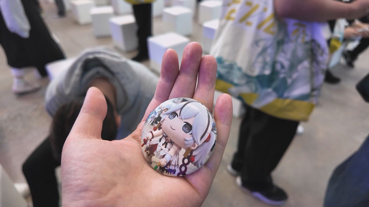 현장에서 많은 인기를 모은 '캔뱃지' 제작기. 원하는 이미지를 이 기계에 전송하면 바로 캔뱃지로 만들어준다.