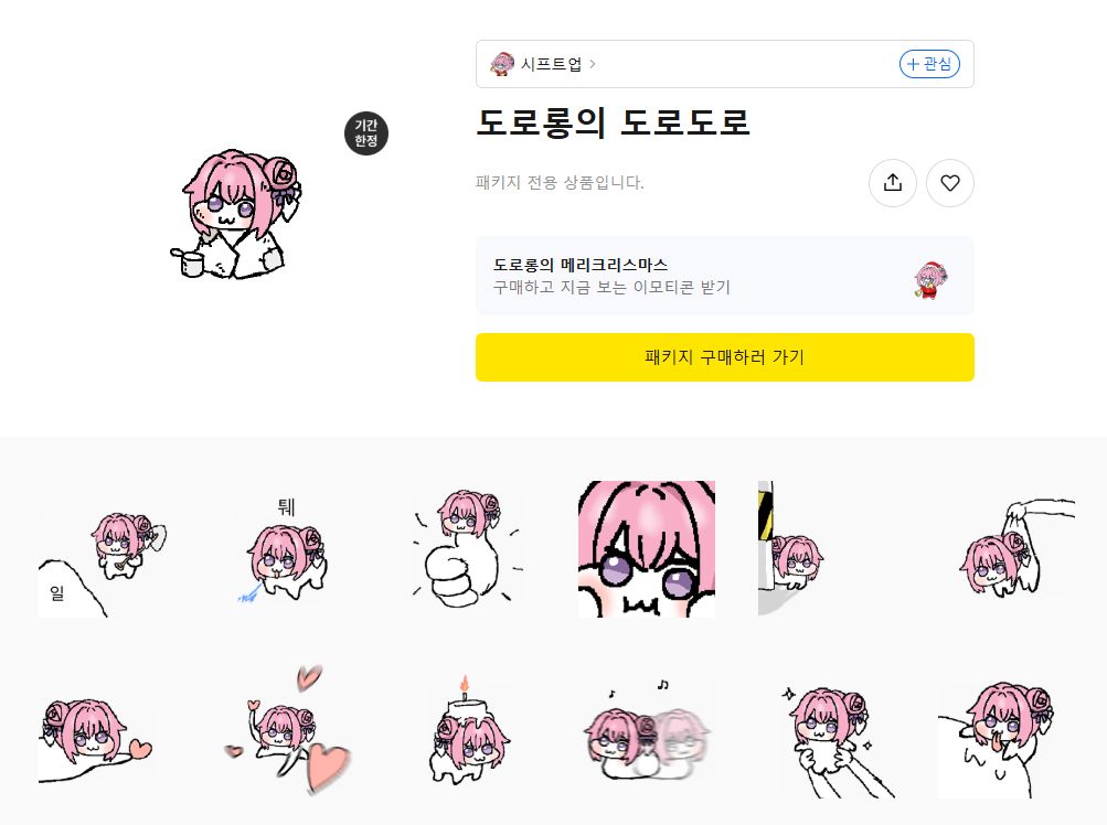 시프트업이 이번에 선보인 신규 '도로롱' 이모티콘은 크리스마스와 산타를 소재로 하는 이모티콘이며, 특히 오는 12월 25일까지 구매한다면 한정판 이모티콘인 '손그림 도로롱'(도로롱의 도로로로)를 추가로 더 받을 수 있어서 주목받고 있다.