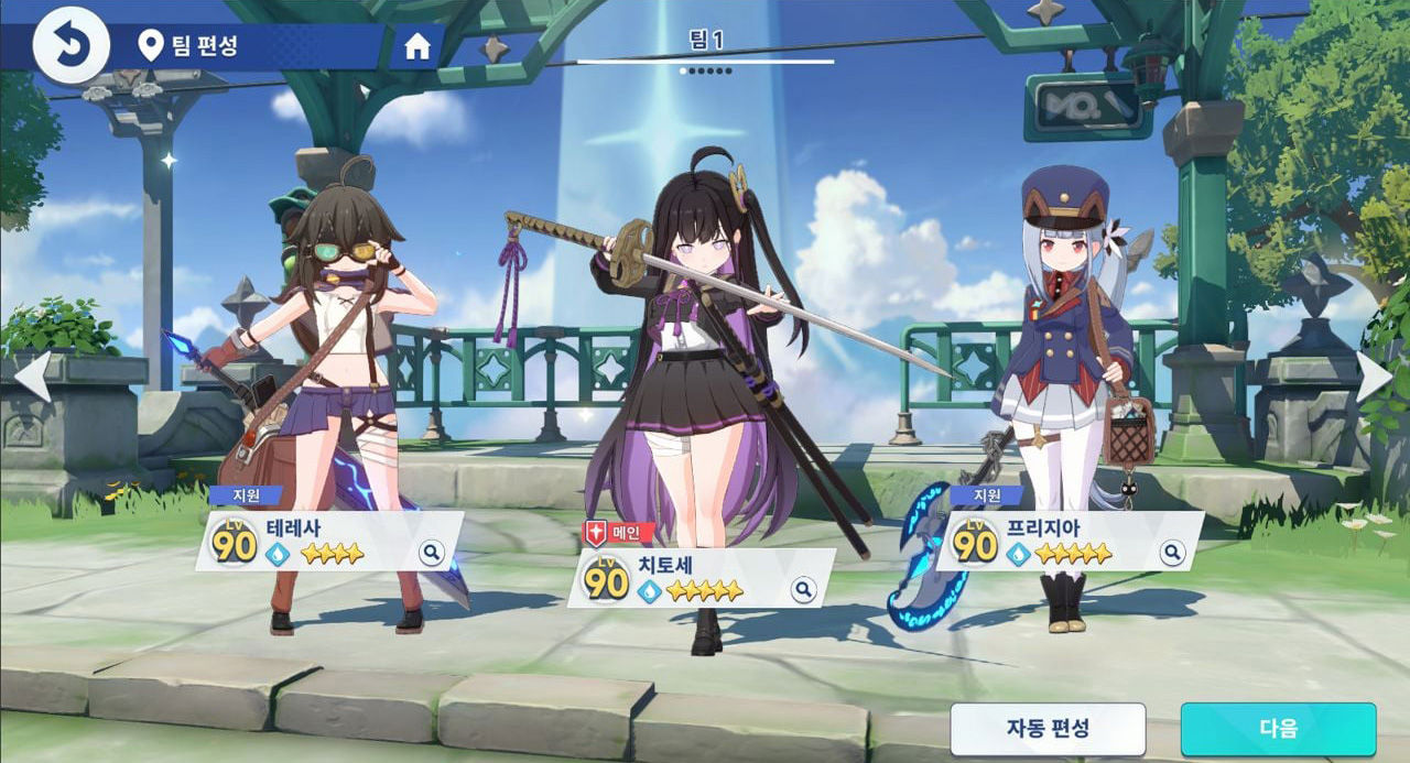 단순히 캐릭터를 뽑고 육성했다고 바로 쓸 수 있는 것이 아니라, 키운 캐릭터들은 '파티'로 편성한 다음 → 로그라이크 콘텐츠인 '별의 탑'에서 최종 완성해야 여러 콘텐츠에 도전할 수 있다.