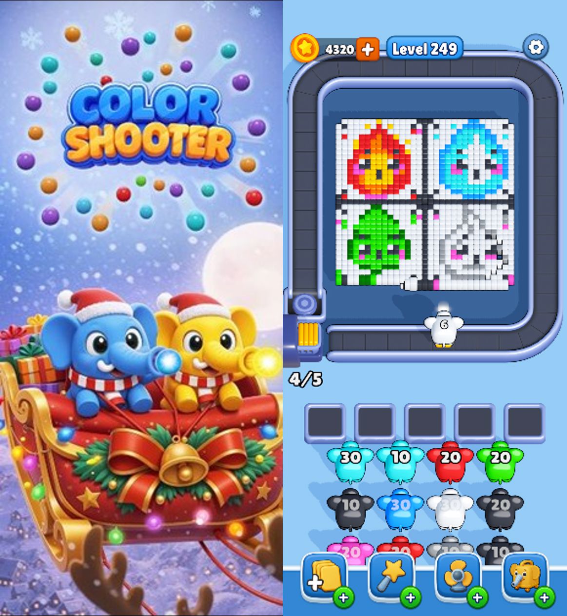 <컬러슈터>는 지난 12월 2일 글로벌 출시된 AI 스튜디오의 두 번째 신작이다. 색상별 타일을 제거하는 퍼즐 장르 게임으로 유저가 선택한 색상의 코끼리 캐릭터를 활용해 타일을 제거하는 독창적인 플레이 구조와 직관적이면서도 전략적인 규칙을 결합해 캐주얼 유저층을 중심으로 높은 몰입도를 이끌어내고 있다.