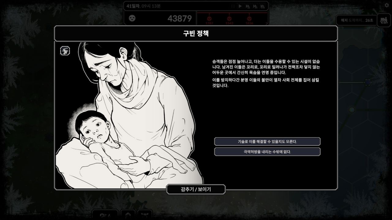 ▲빈민들을 구제하면 인구 과밀로 인해 이동속도가 느려지는 패널티가 있다. 빈민을 구제하지 않으면 인구수가 줄어든다.