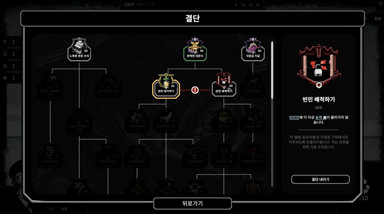 ▲결단에서 가장 처음 고민하게 되는 것은 빈민을 맞이할지, 배척할지 정하는 것이다.