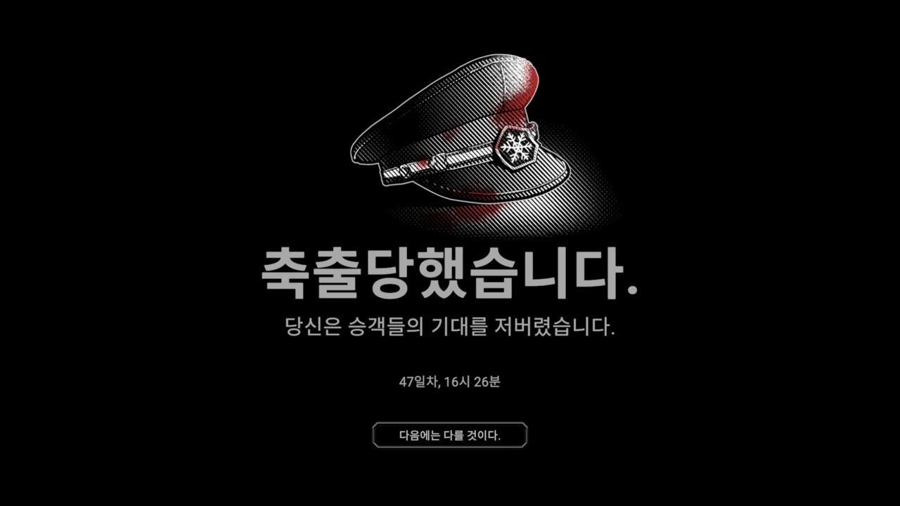 ▲행복도가 0이 되어도 바로 엔딩이 되는 것은 아니다. 하루의 시간을 더 준다. 하지만 그때도 행복도를 회복하지 못하면 기관사 축출당하는 엔딩을 가장 많이 보게 될 것이다.