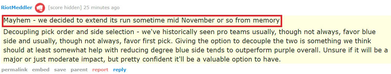 ▶"기억하기로는 11월 중순 쯤 '아수라장' 모드의 연장이 결정됐다." 개발자 메들러가 레딧에 올린 글