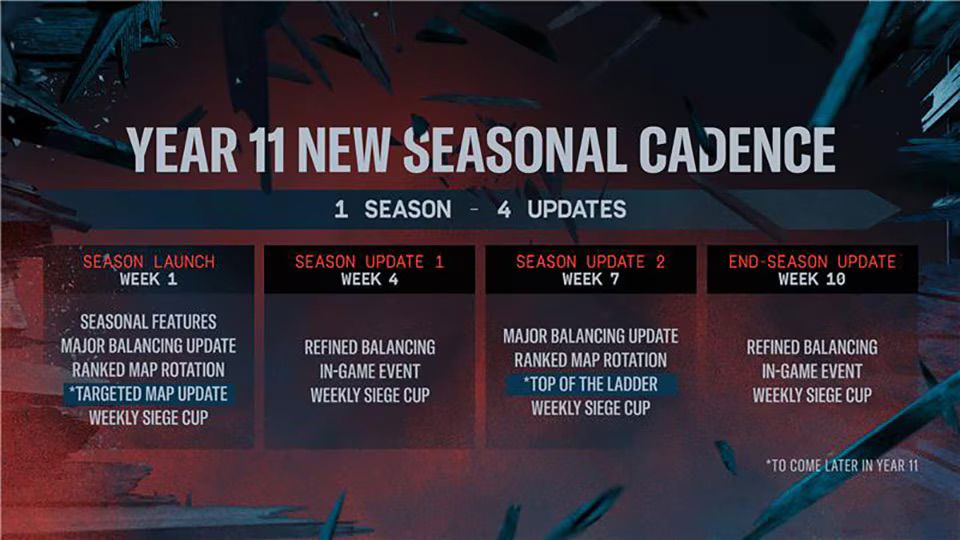 Year 11은 현재 플레이어들이 가장 원하고 있는 중요한 주제들을 다루는 해가 될 것이다. 다가올 ‘식스 인비테이셔널(Six Invitational)’에서 많은 발표가 있겠지만, 이미 힌트를 드렸듯 랭크 시스템 개편이나 밸런스 변경 등 기능을 훨씬 더 빠르게 제공하는 데 집중할 것이다.