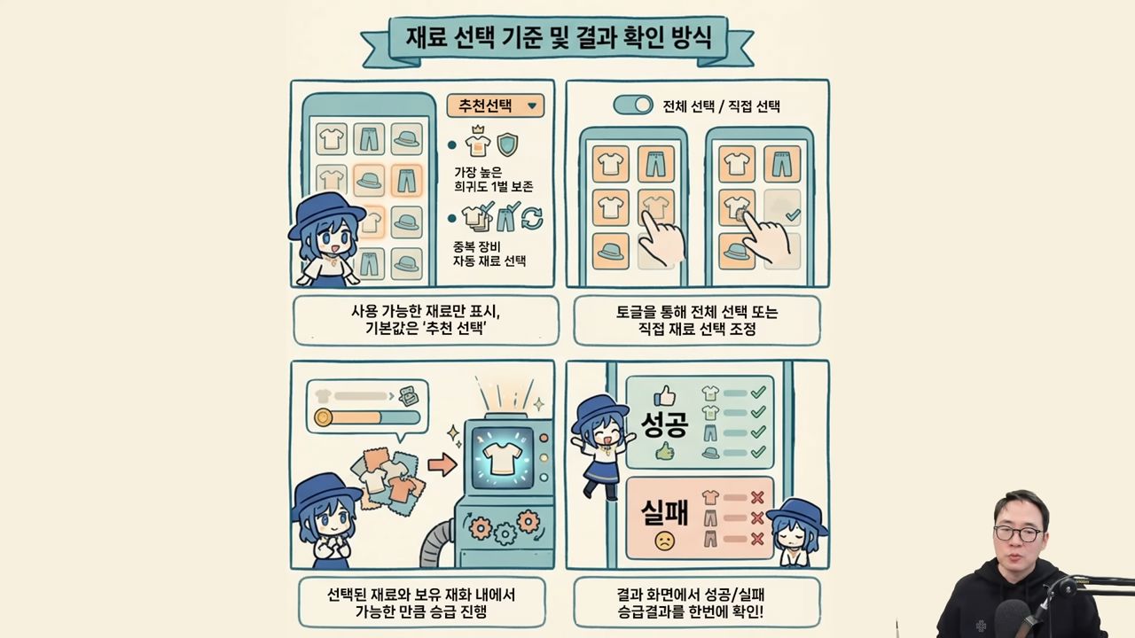 이용자 편의성을 위한 시스템 개선도 발표됐다. 패션 장비 관리의 번거로움을 줄이기 위해 ‘패션 장비 모두 승급’ 기능이 추가된다. 이는 룬 일괄 승급 시스템과 유사하게 같은 등급의 패션 장비를 한 번에 승급할 수 있는 기능이다. 더불어 ‘추천 선택 기능’을 통해 희귀도가 높은 장비는 보존하고 중복 장비는 자동으로 재료로 사용할 수 있게 되어 반복적인 작업 과정을 획기적으로 축소했다.
