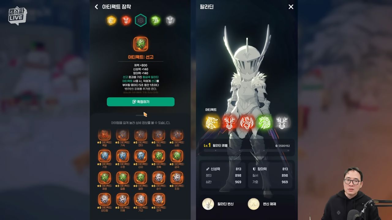 ▶ 팔라딘 아티펙트 장착 시 팔라딘 변신 상태에 강력한 효과가 추가된다.