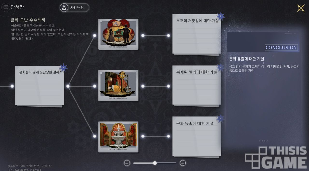 ▲ 단서판 안에서 증거를 끌어와 연결하며 '가설'을 세우고 검증하기도 한다.