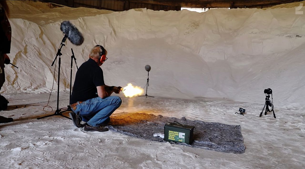 ▶ 사실적인 사운드 구현을 위해 실제 총성을 녹음 중인 제작진