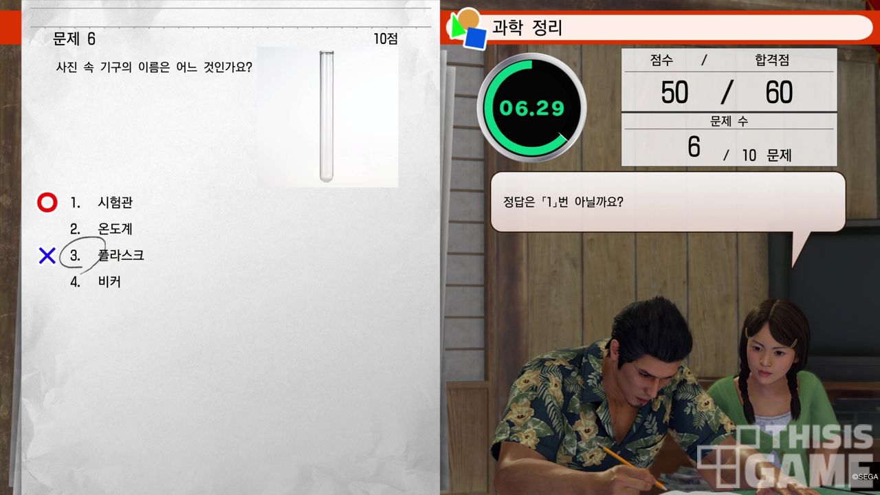 학교 숙제, 재봉, 곤충 채집 등 미니 게임도 다양하고 꽤 재미있다. 사진 속 물건이 시험관인지 플라스크인지 묻는 숙제는 플레이어의 상식을 테스트하고, 재봉은 이름만 재봉이지 실상은 <아웃런>이나 <소닉 드리프트> 같은 레이싱 게임의 형식을 따른다. 개인적으로 가장 재밌게 즐긴 미니 게임인데, 직접 해보면 손맛이 꽤 좋다.