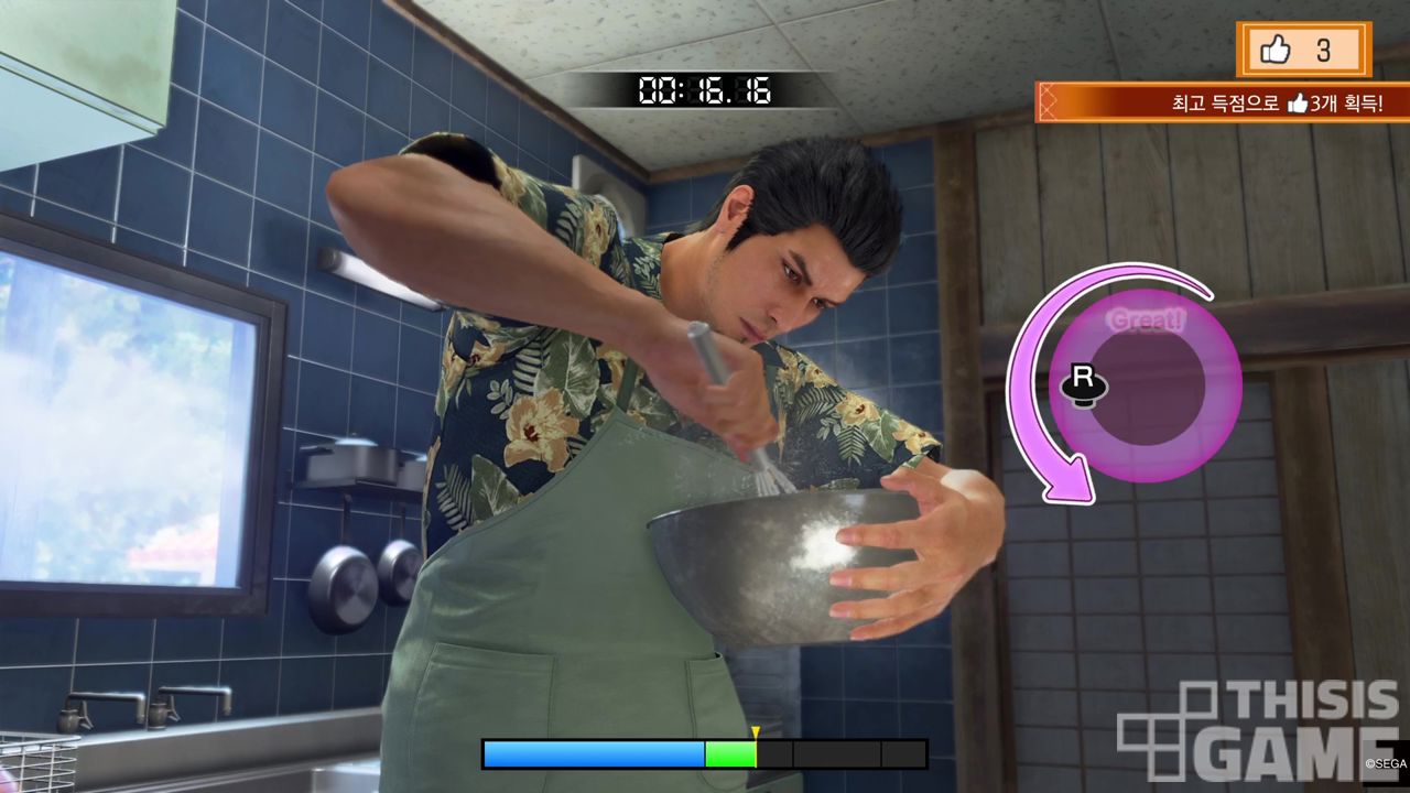 이렇게 미니 게임으로 유대를 쌓고, 텃밭 가꾸기와 요리로 ‘아빠 노릇’을 하다 보면 키류의 ‘아빠 랭크’가 올라간다. 랭크가 오르면 키류의 능력치도 상승하니, 아이들과 함께 아빠도 성장하는 셈이다. 유대가 깊어지면 아이들의 서브 퀘스트도 해금된다. 원작의 보육원 파트를 게임 플레이에 자연스럽게 녹여낸 영리한 기획이라 할 만하다.