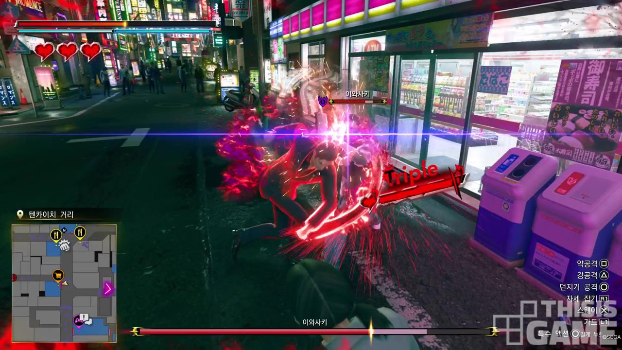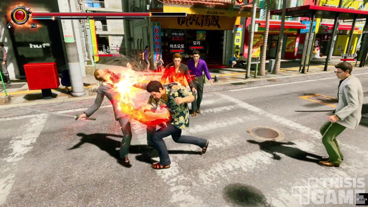 원작을 경험해보지 못한 이들을 위해 설명하자면, 원작의 전투는 적들이 가드를 너무 잘해서 해외에선 ‘Blockuza(Block+Yakuza)’라는 별명이 붙을 정도였다. 적들의 가드가 워낙 굳건하다 보니, 이를 무시하는 잡기나 상대 공격을 받아치는 ‘코마키류 3대 오의’에만 의존해야 했다. 결국 전투가 단조로운 패턴으로 흐를 수밖에 없었던 것이 원작의 가장 큰 아쉬움이었다.