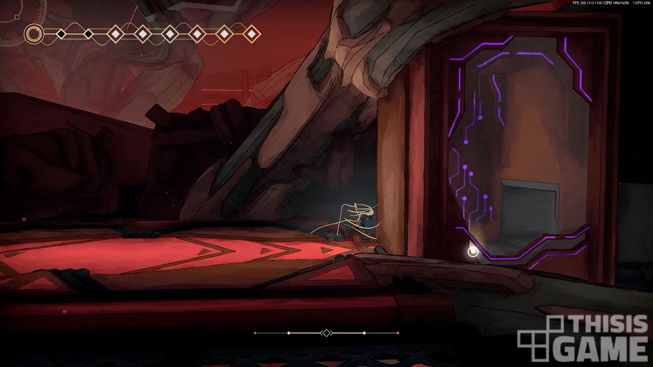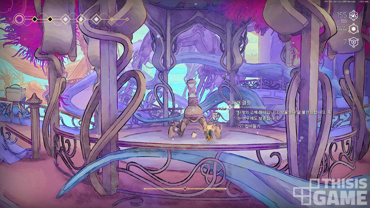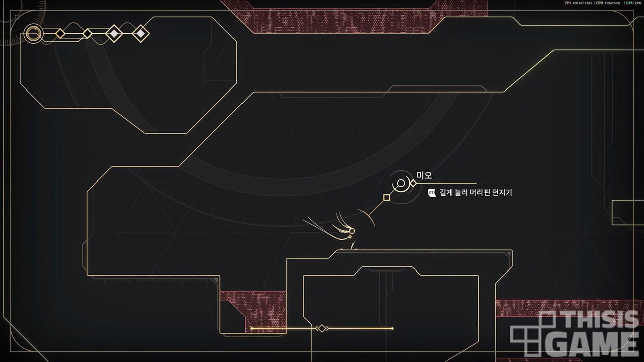 미오는 우주선의 기능을 담당하는 공간들의 목소리를 수집하는 과정을 거칩니다. 이상한 터널을 발견할 때마다 처음 미오를 깨워 준 ‘삼스크’로부터 새로운 기술을 얻게 되죠. 이 게임은 메트로배니아의 기본적인 문법에 충실하면서도 독특한 개성을 수시로 뽐냅니다.