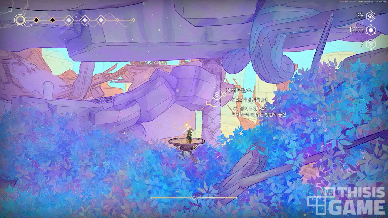 새 기술은 상징적으로 도식화된 가상 공간에서 회한이 섞인 수수께끼 같은 이야기를 들려주며 몸에 익히게 하고, 이를 통해 부유해서 이동한다거나 소금쟁이처럼 수면을 걷는 등 다른 게임들에서는 보지 못한 것들을 보여주곤 합니다.