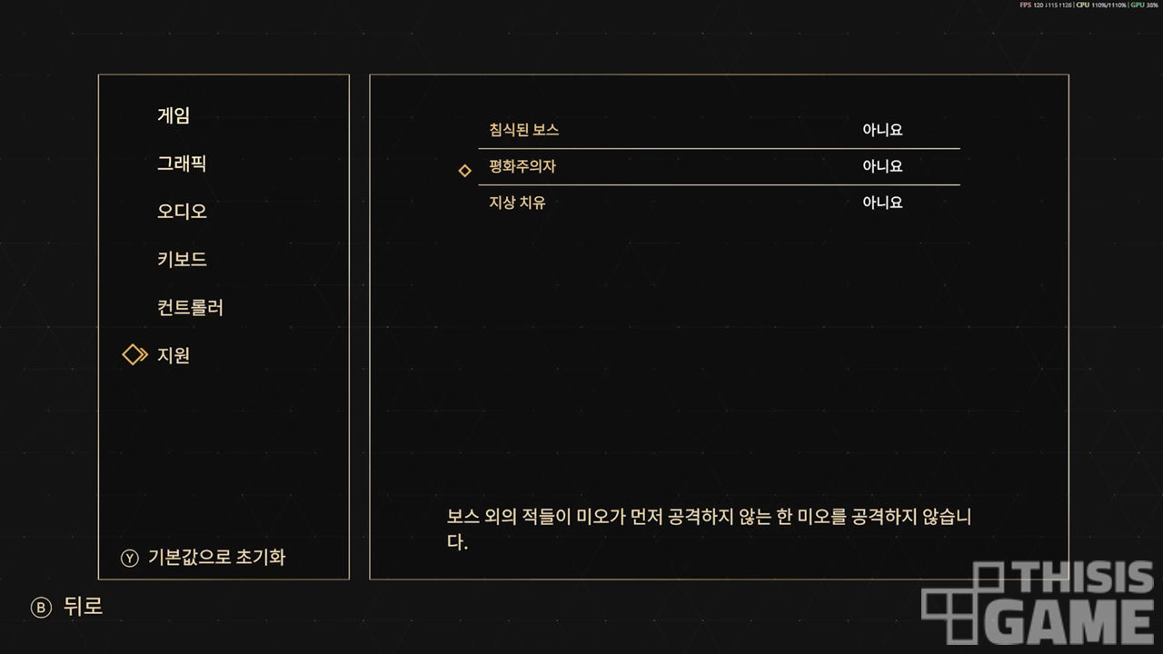 결정적으로 이 변형 요소는 직접 획득하고 장착하지 않더라도 지원 옵션에서 항상 켜 둘 수도 있습니다. 전투에서도 재도전할 때마다 보스가 약화되도록 하거나 필드를 진행할 때 몹들이 선공하지 않도록 하는 옵션도 있어, 보스전이 어렵게 느껴지거나 탐험에 집중하고 싶다면 훨씬 편안하게 진행할 수 있는 배려도 마련되어 있습니다.