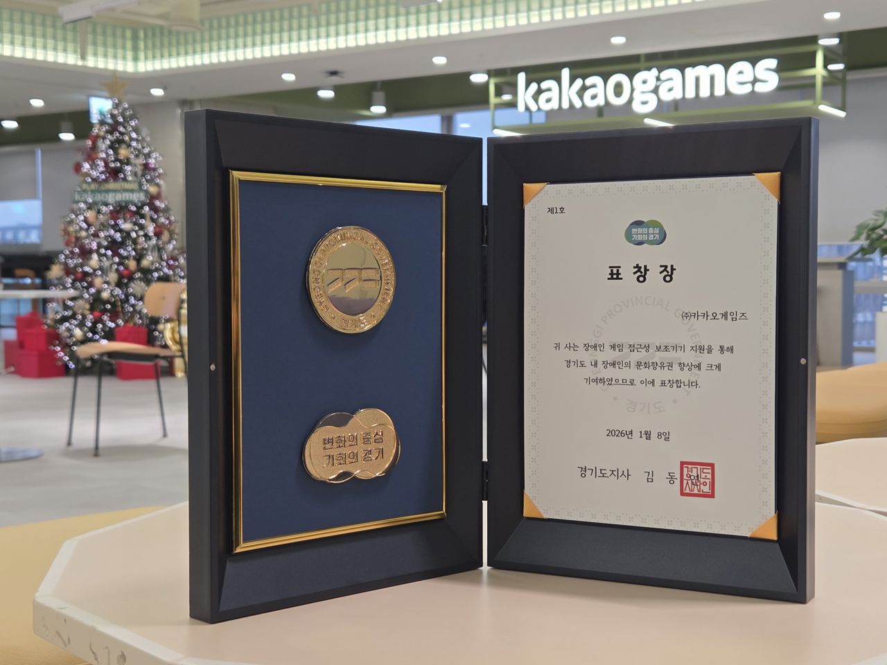 카카오게임즈는 장애인 게임 접근성 향상을 위한 보조기기 지원 사업인 '함께하는 플레이버디'로 경기도 내 장애인의 문화 향유권 증진에 기여한 공로를 인정받아 경기도지사 표창을 수상했다고 20일 밝혔다.