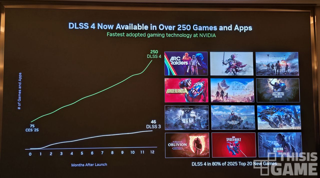 CES 2025에서 DLSS 4(딥 러닝 슈퍼 샘플링, AI로 업스케일링을 해주는 기술)을 공개한 게 작년 이맘때의 일이다. 당시 75개 게임과 앱에 적용된 최신 기술이었다.