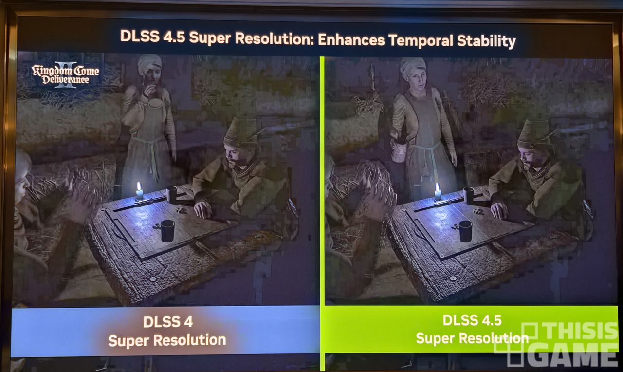 ▲ DLSS 4에 비해 화질 개선 능력이 더 좋아졌다. 사진은 <킹덤 컴 딜리버런스 2>의 게임 화면으로 보여준 예시.