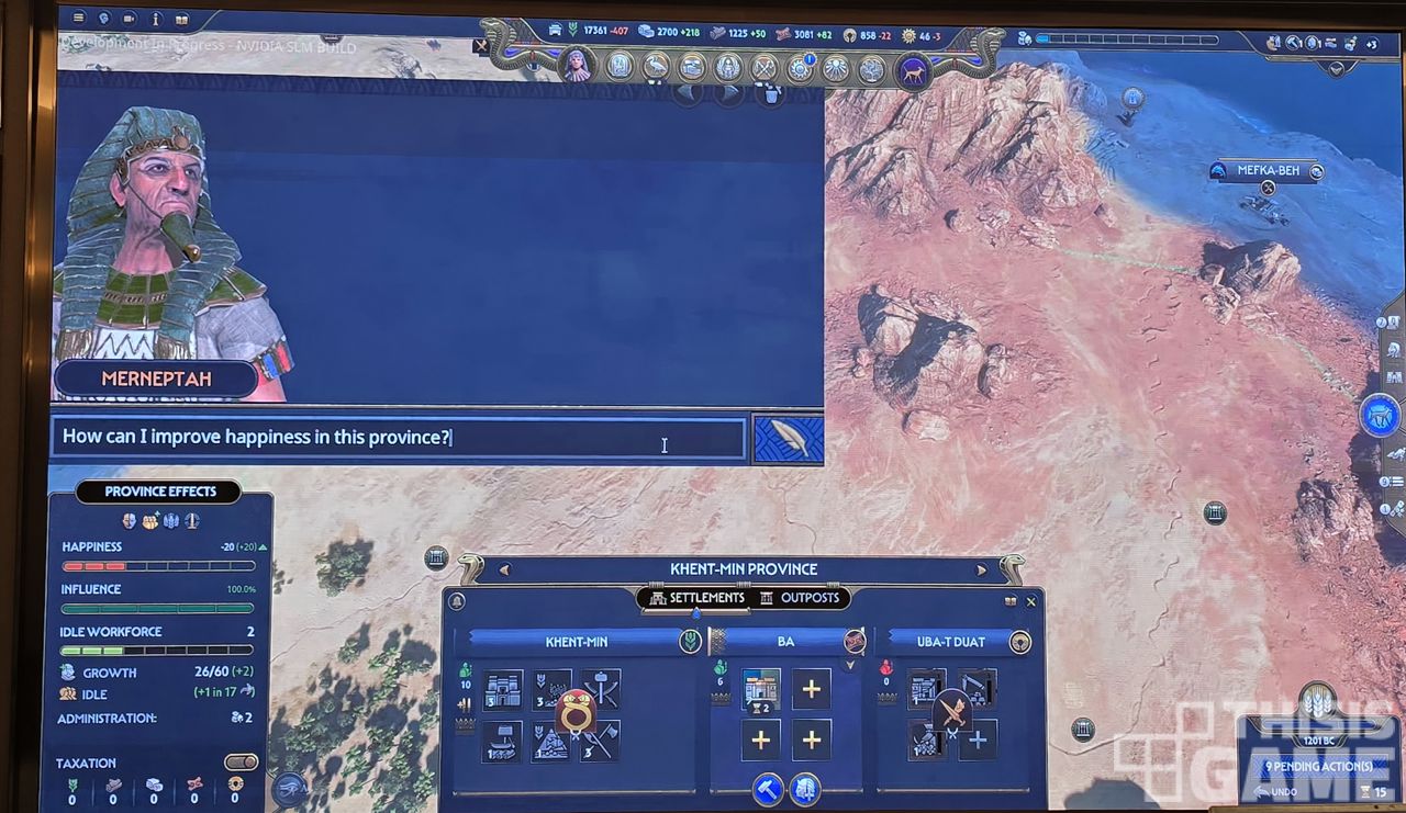 ▲ 엔비디아 ACE 기술이 적용된 <토탈 워: 파라오>의 어드바이저