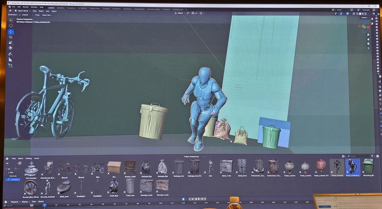 3D 모델링된 애셋을 가져와서, 블렌더 안에서 씬 레이아웃을 만든(공간에 배치) 후에, FLUX의 이미지 생성 기술을을 활용하는데, 첫 시작 프레임과 마지막 엔드 프레임을 넣고 프롬프트를 주면, LTX 2로 애니메이션을 채워주고, 이후 상대적으로 낮은 화질로 작업한 결과물을 4K로 업스케일링을 하는 과정을 거친다.