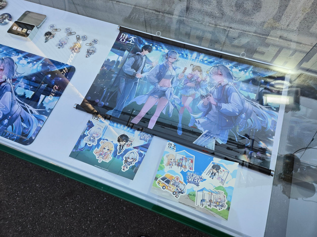 굿즈 전시 코너. 이번 행사에서만 판매하는 한정 굿즈도 판매되었고, '매진' 된다면 현장 예약을 통해 추후에 받을 수 있는 형태로 판매되었다.