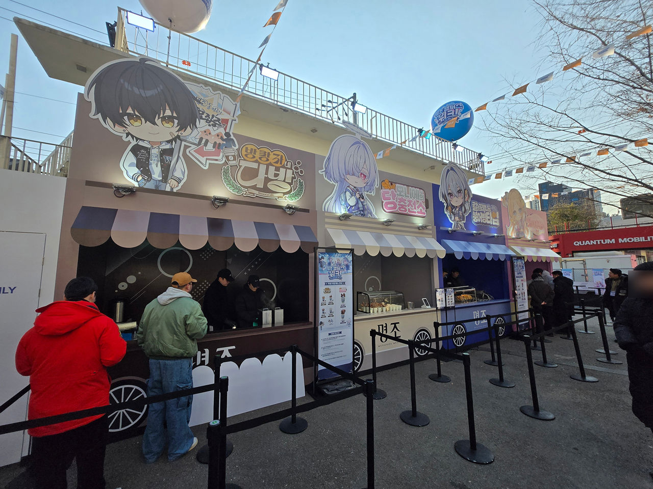야외 식당 코너. <명조: 워더링 웨이브> 게임의 여러 분위기에 맞춘 먹거리를 판매하고 있었다.