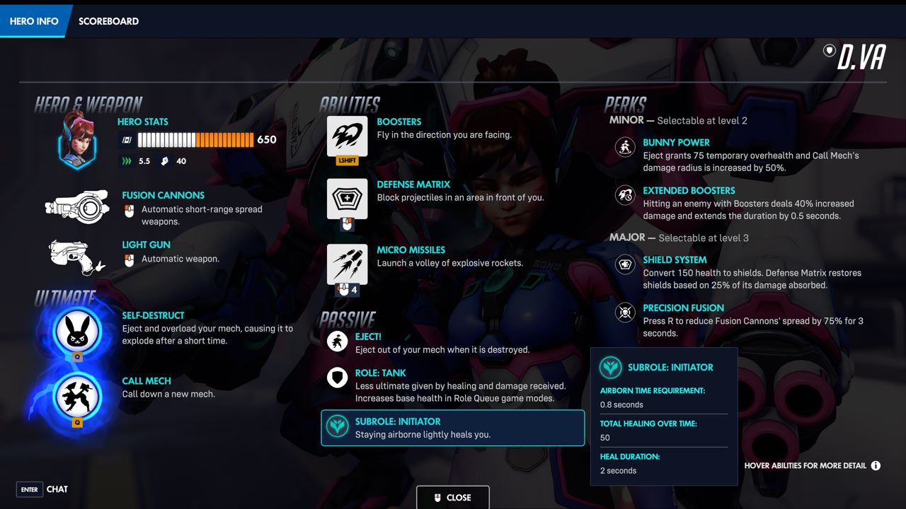 ▶ 개시자: 공중에서 약간의 생명력을 회복한다. = D.Va / 둠피스트 / 윈스턴 / 레킹볼