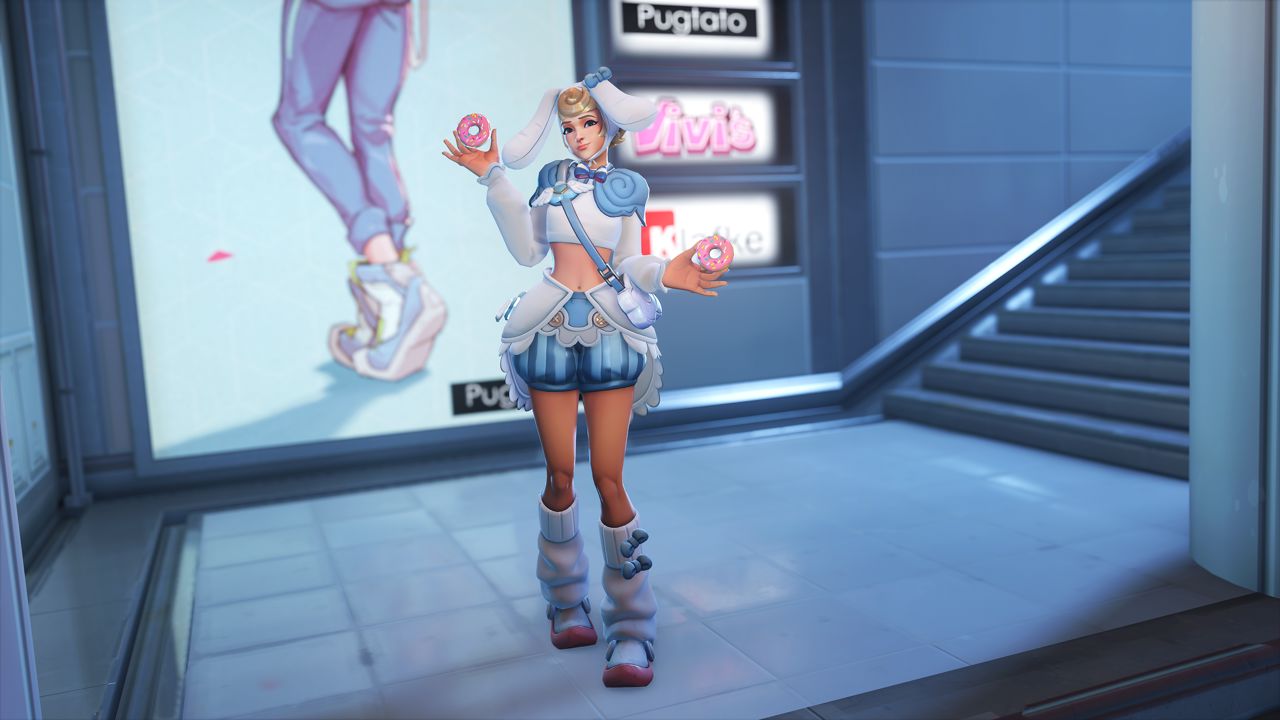 주노=헬로키티, 키리코=시나모롤, 메르시=폼폼푸린, D.Va=마이멜로디, 위도우메이커=쿠로미, 루시우=케로피와 각각 연결된 콜라보다.