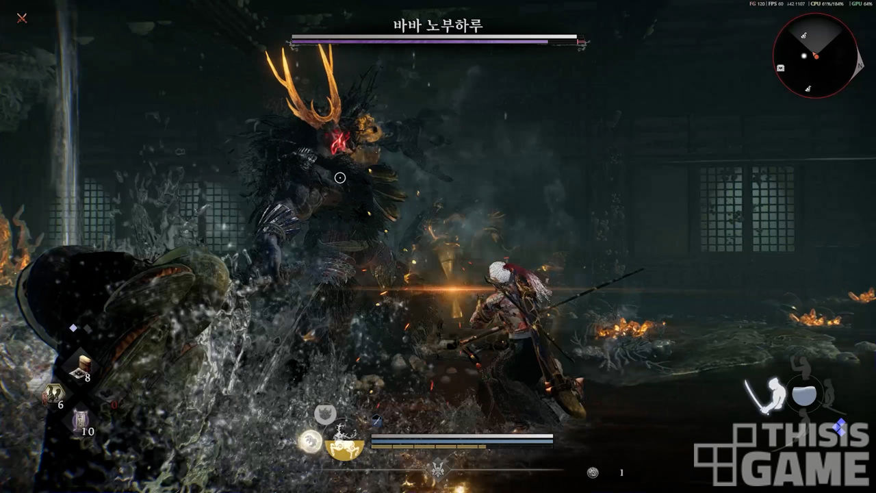 사무라이 스타일에서는 자세를 변경하며 잔심을 발동해 더 많은 기력을 회복하는 이제까지의 전투 스타일에, 이전에는 제한적으로 쓸 수 있던 ‘받아치기’를 사무라이 스타일일 땐 항상 쓸 수 있게 했습니다. 받아치기로 기력을 회복할 수 있기 때문에 확실히 더 편해졌죠. 여기에 게이지를 모아 발동하는 ‘기술 연마’로 기력을 소모하지 않고 강한 공격을 할 수 있습니다.