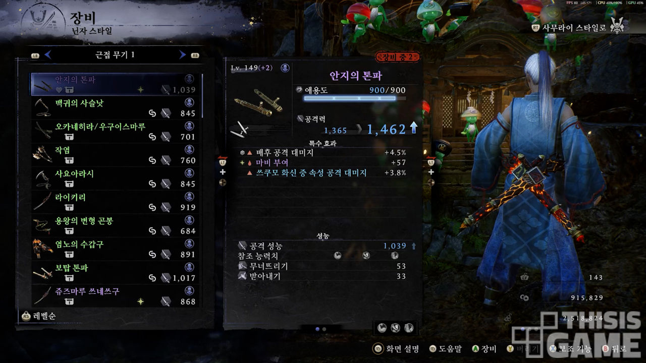 <인왕 3>는 크고 작은 부분에서 많은 개선을 이뤘지만, 파밍 시스템과 액션의 기본 스타일에서 이전 시리즈의 디자인을 대부분 유지하고 있기는 합니다. 더 복잡해지기만 한 메뉴 화면의 구성이나 새 지역의 설렘을 주지 못하는 평이한 비주얼은 오히려 전보다 아쉽기도 하고요.