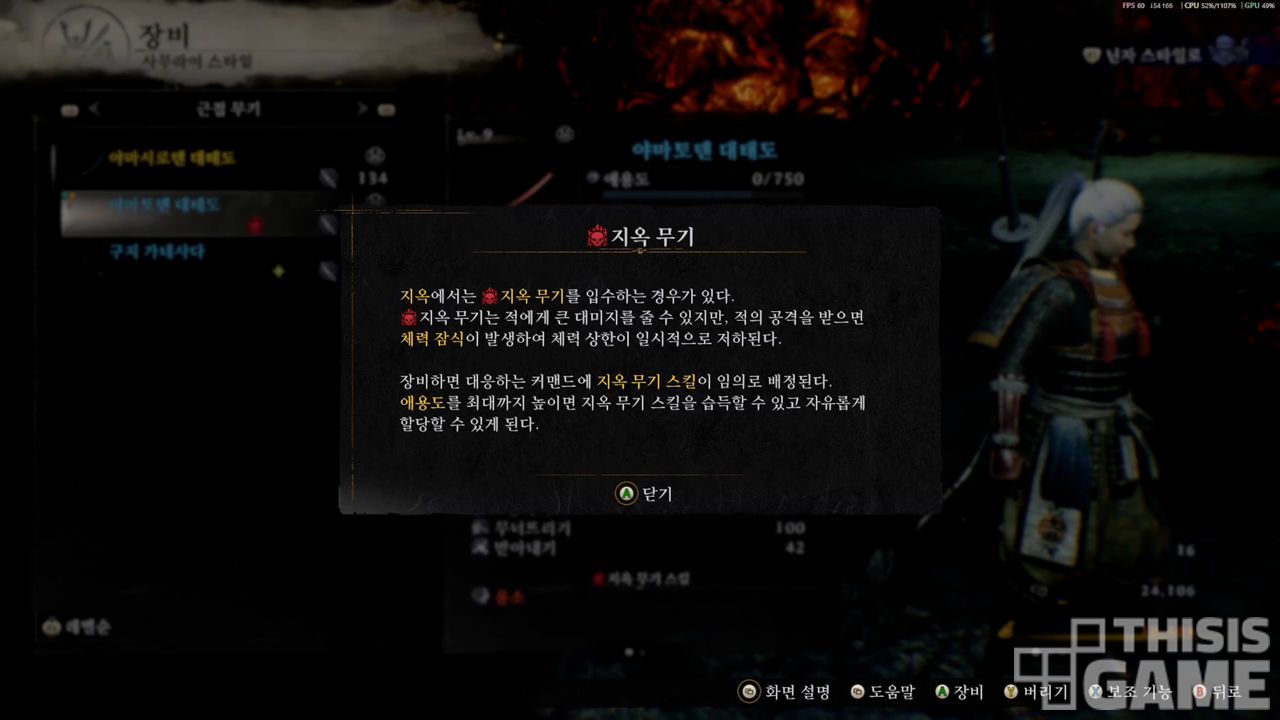 ▶ 지옥에서 얻을 수 있는 지옥 무기는 애용도를 높이면 고유한 스킬을 얻을 수 있어 파밍의 재미를 주는 요소.