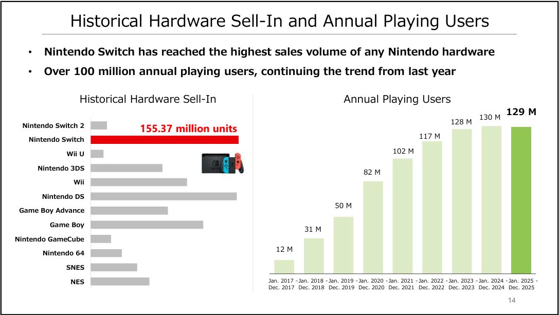 닌텐도가 스위치 시리즈를 앞세워 차세대기의 기록적 보급과 전작의 역대 최다 판매를 동시에 달성했다. 한편, 수익성 지표에서는 현실적인 과제가 드러났다.