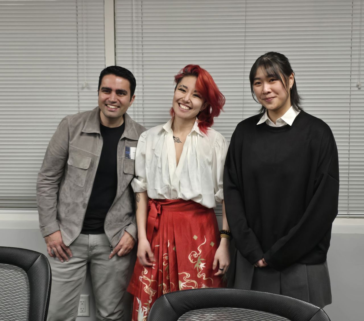 ▲ 왼쪽부터 '엠레'의 미국 성우 케렘(Kerem), '안란'의 미국 성우 파리하(Fareeha), 조시 장 <오버워치> 내러티브 디자이너입니다.