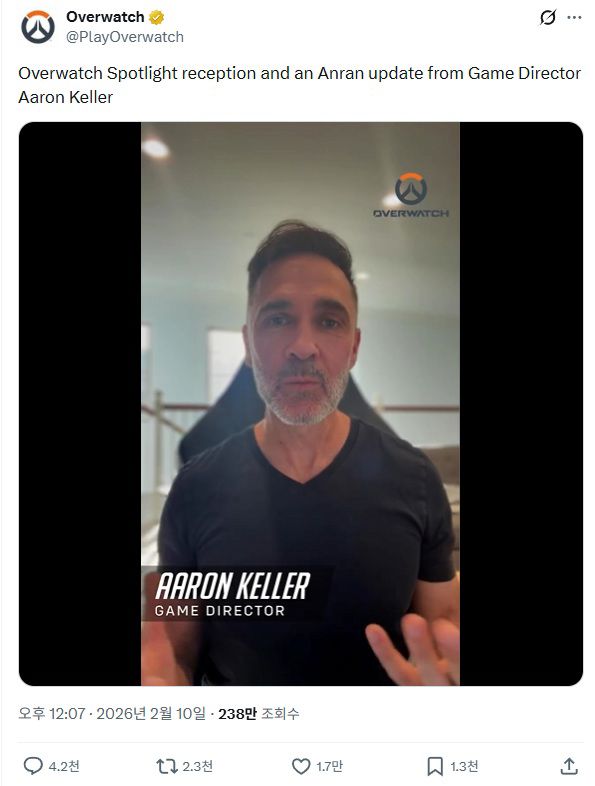 <오버워치> 공식 채널을 통해 '애론 켈러' 게임 디렉터는 다음과 같이 말했다.