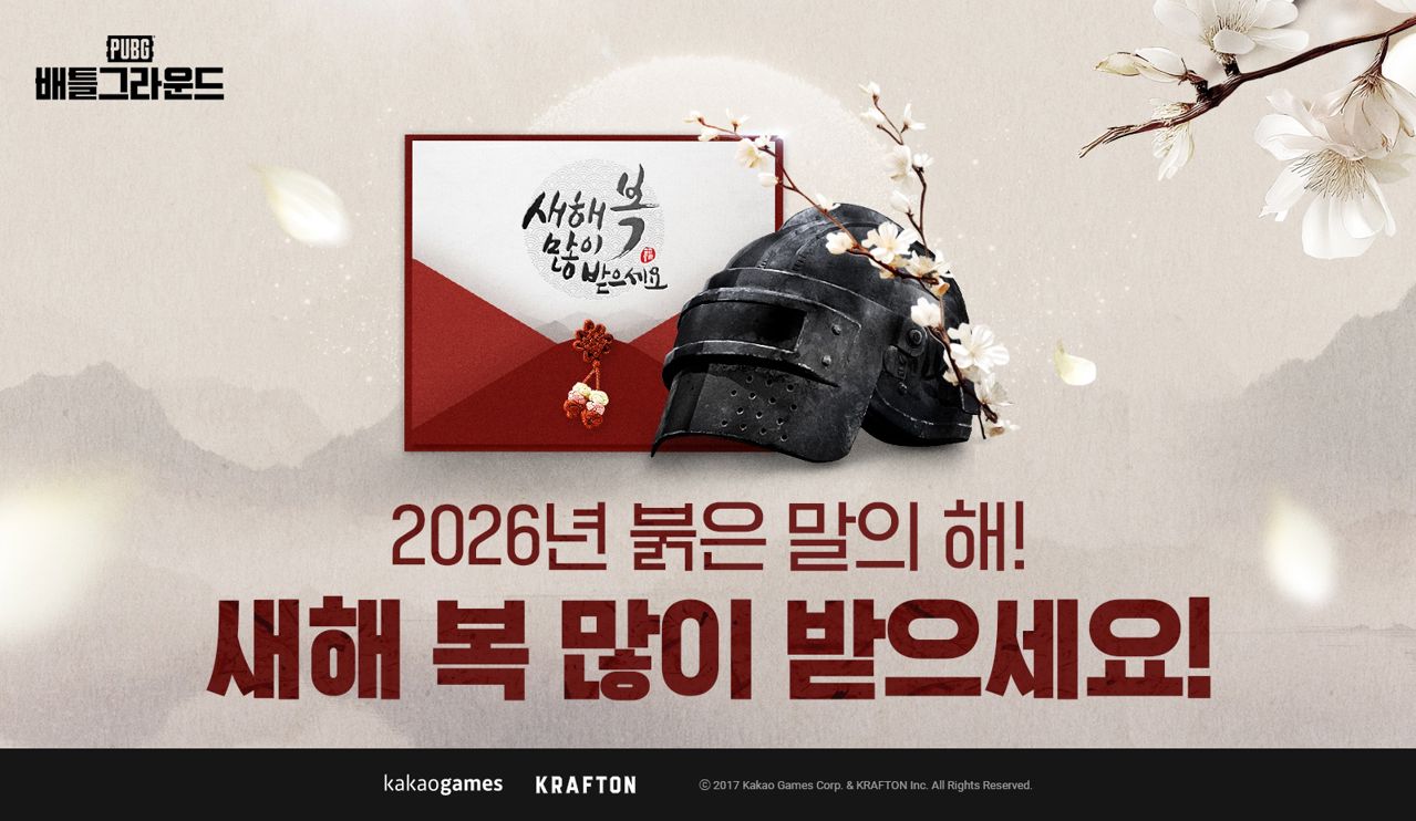 카카오게임즈에서 국내 서비스 중인 PC 온라인 게임 <PUBG: 배틀그라운드>는 단판 중심의 빠른 몰입감이 강점인 게임으로 명절마다 이용자들에게 큰 사랑을 받고 있다. 특히 이번 설에는 <배틀그라운드>를 찾은 이용자들이 즐길 수 있는 다양한 이벤트를 마련했다. 오는 22일까지 '2026년 붉은 말의 해! 설맞이 3행시 이벤트'를 진행하고 추첨을 통해 지코인(G-Coin) 최대 1,000개를 선물한다. 또, 18일까지 일반전, 경쟁전, 캐주얼 모드에서 일정 시간 이상 생존한 이용자 중 추첨을 통해 지코인(G-Coin) 500개를 지급한다. 이어 설날 콘셉트의 코디 이미지를 이벤트 게시판에 업로드한 이용자 중 추첨을 통해 지코인(G-Coin) 300개를 증정하는 이벤트도 함께 진행된다.