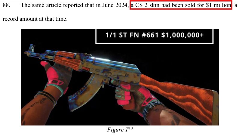 ▶가상 아이템의 화폐 가치 증명 사례로 언급된 거래가 100만 달러 스킨.(출처: 뉴욕주 검찰 소장)