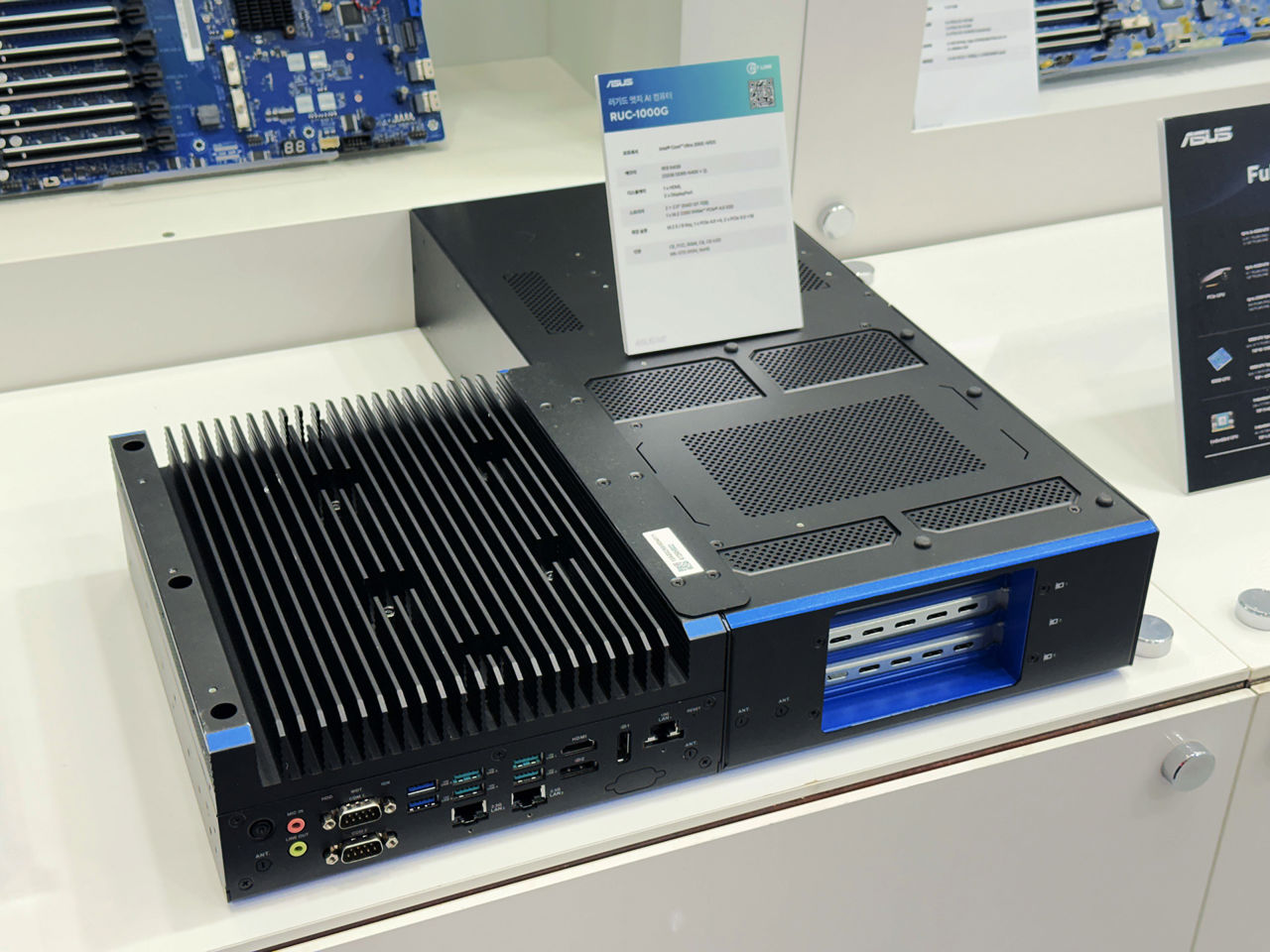 에이수스 RUC-1000G는 2U 폼팩터에 600W GPU를 지원하여 최대 4,000 TOPS의 AI 성능을 보여주는 러기드 랙 엣지 AI GPU 시스템이다. PCIe 5.0를 기반으로 빠른 데이터 처리, 인텔 코어 울트라 200S 시리즈 프로세서를 탑재해 고성능을 보여줄 뿐만 아니라 메인 시스템과 GPU 섀시를 분리하여 관리하는 냉각 시스템을 적용해 가혹한 환경에서도 일관된 성능을 보여준다. 또한 MIL-STD-810H 인증으로 높은 내구성, 10GbE, 2.5GbE 등 다양한 I/O와 원격 모니터링을 위한 iBMC 모듈을 지원해 고성능 산업용 AI 컴퓨팅에 최적화되어 있다.