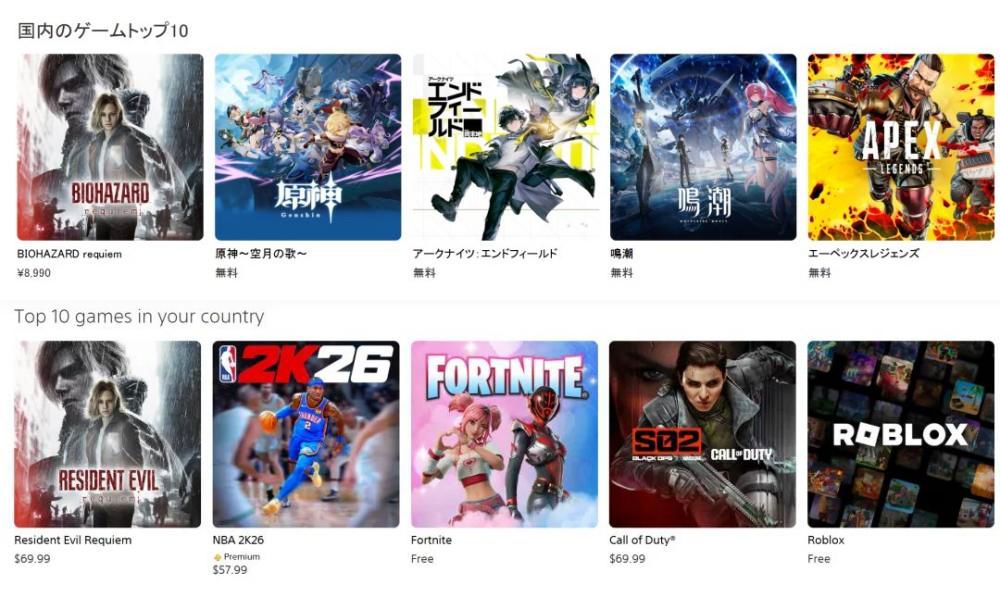 콘솔 진영부터 보면, 소니 플레이스테이션 스토어가 통째로 장악됐다. 일본과 미국 모두 매출과 다운로드 순위를 동시에 석권했다. 8,900엔이라는 높은 가격에도 기세는 꺾이지 않았고, 핵심 플레이어들의 고품질 AAA 대작에 대한 지불 의지가 여전히 건재함을 증명했다.