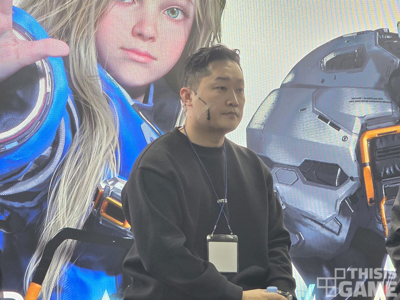 ▲ 심형탁 배우가 패드를 잡고 플레이하는 동안, 옆에서 조용희 디렉터와 오야마 나오토 프로듀서가 게임에 대한 소개를 이어갔습니다.