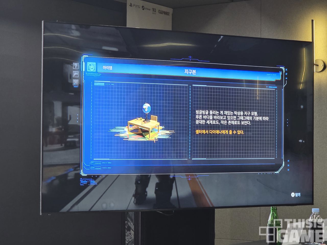 사진은 지구본을 복원했을 때 '셸터에서 다이애나에게 줄 수 있다'는 설명이 뜨는 장면입니다.