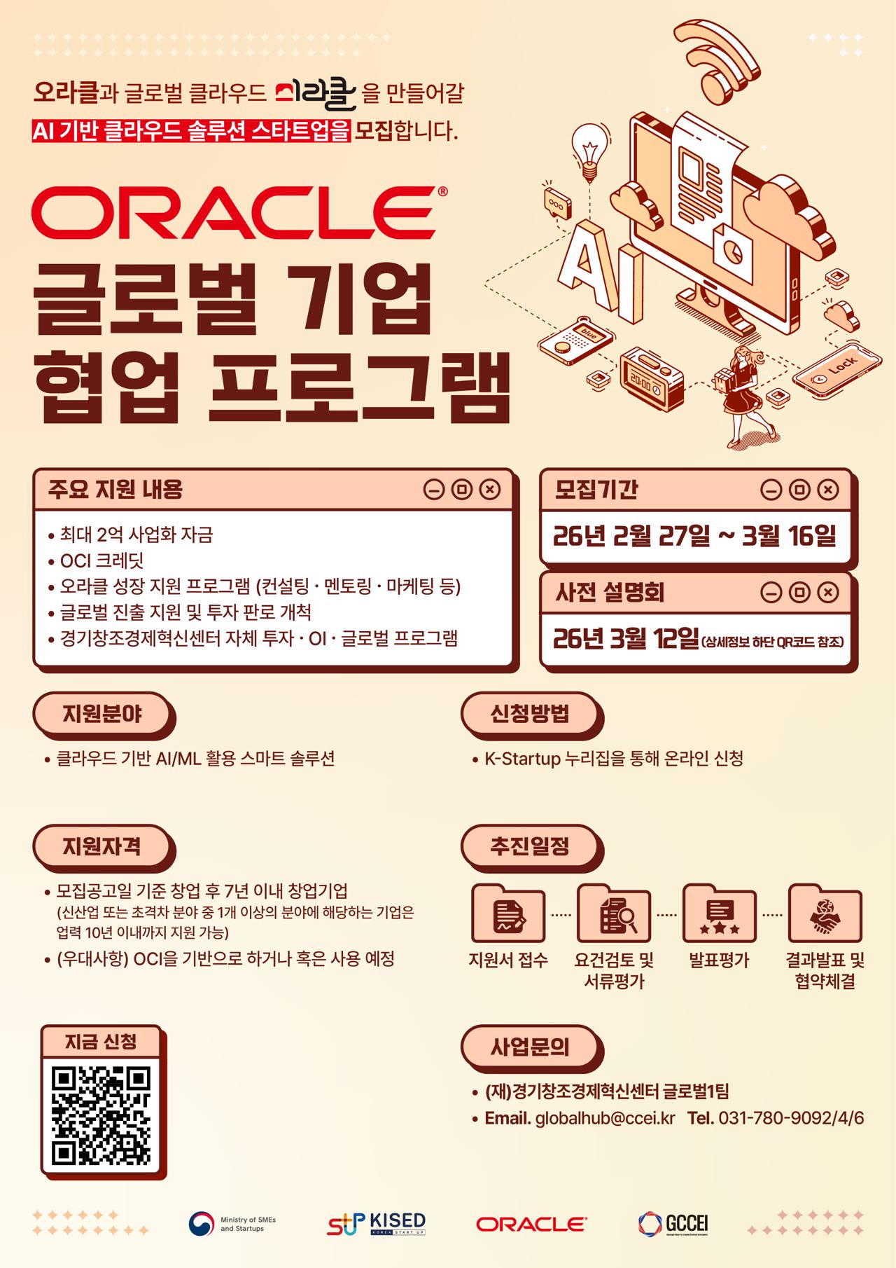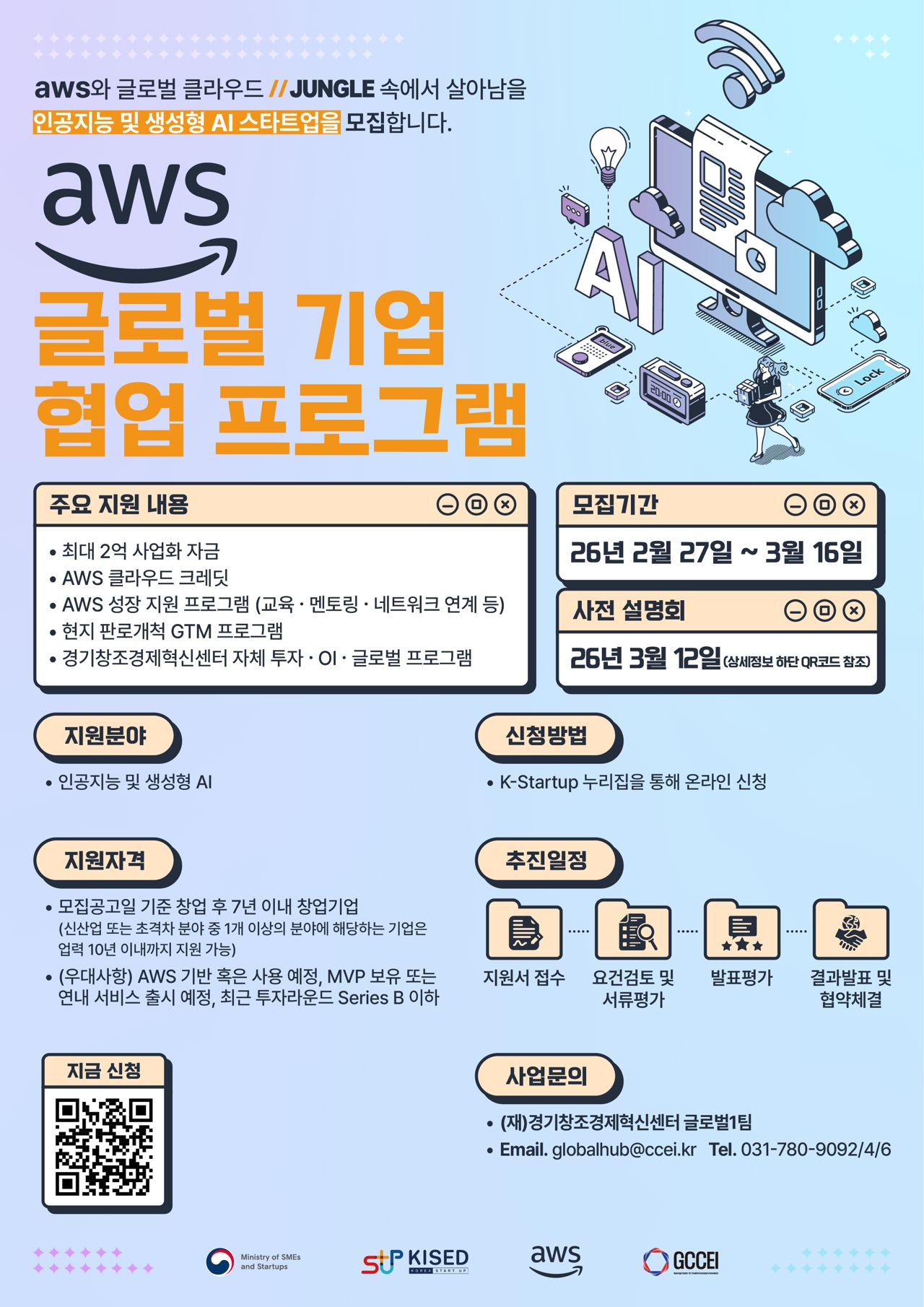 경기혁신센터는 이번 사업에서 AWS(정글), MS(마중), 오라클(미라클) 등 총 3개 프로그램을 전담 운영하며 AI 및 딥테크 분야의 유망 기업을 집중 발굴한다. 선정된 스타트업에는 ▲ 최대 2억 원의 사업화 자금 ▲ 클라우드 플랫폼 크레딧 ▲ 빅테크 전문가의 직접적인 기술 멘토링 ▲ 글로벌 마케팅 및 판로 개척 등이 지원되어 기술 고도화와 글로벌 경쟁력 확보를 돕는다.
