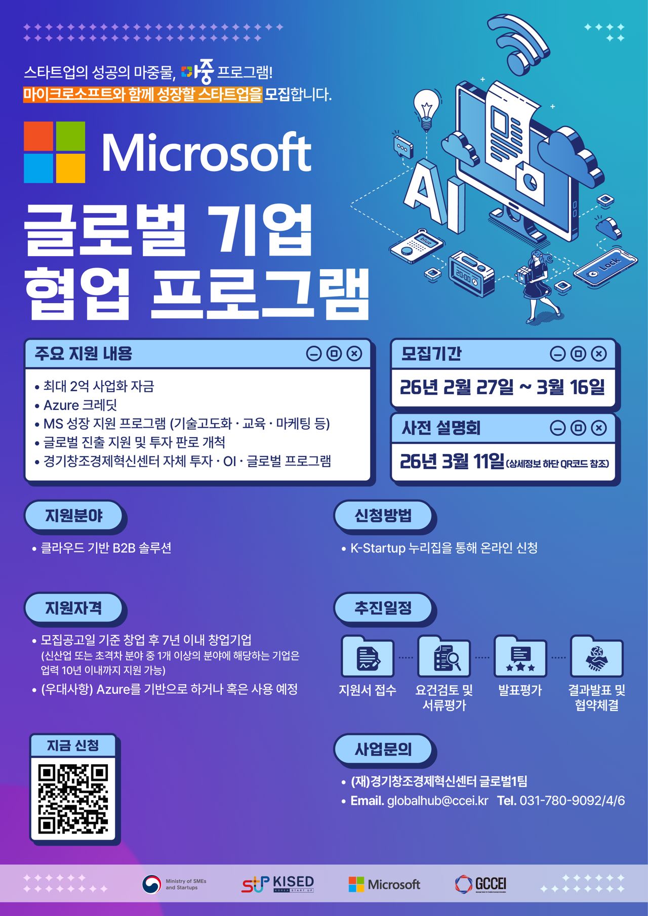 - 최대 2억 정부 사업화 자금, 글로벌 대기업 협업 사업 고도화, 해외 진출 기회 제공