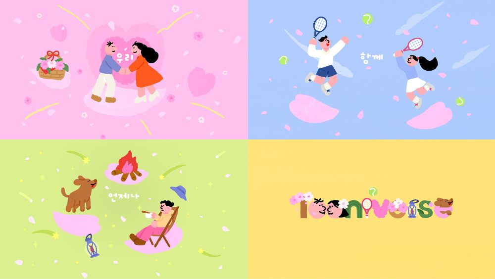 이번 봄 시즌 ID는 국내 일러스트레이터 김잼 작가와 지난해에 이어 올해에도 협업해 김잼 작가의 따뜻한 감성 일러스트가 더해져, 봄의 설렘과 투니버스만의 밝고 활기찬 이미지를 한층 높였다.