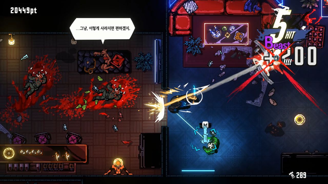 <쿠산: 늑대들의 도시>는 근접, 원거리, 자동 조준의 다양한 공격을 활용해 적을 끊임없이 처치하는 하드코어 탑다운 액션 게임이다.