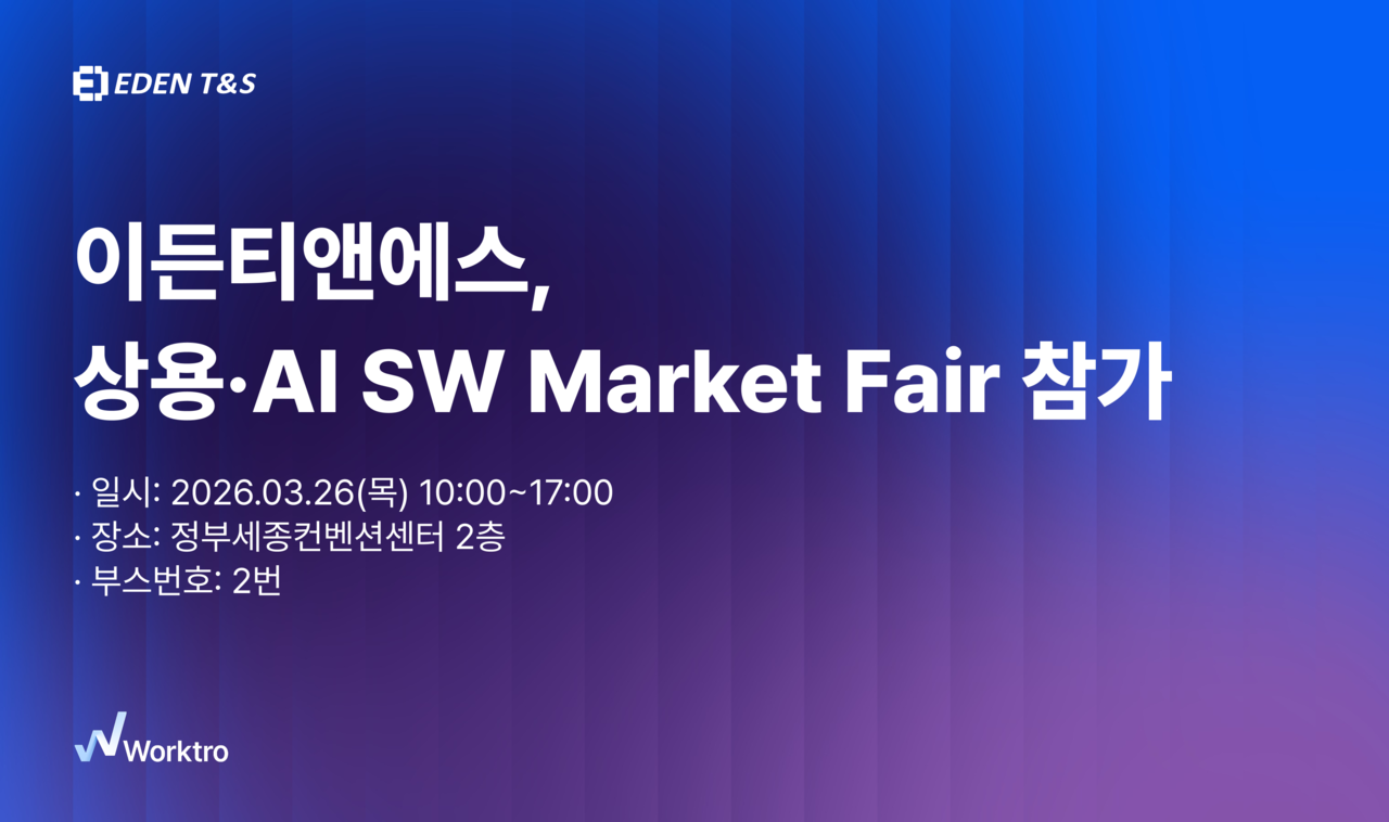 에이전틱 AI 기반 업무 자동화 전문 기업 이든티앤에스가 오는 3월 26일 정부세종컨벤션센터에서 개최되는 '2026 제4회 상용 ·AI SW Market Fair'에 참가해 공공기관 업무 혁신을 위한 에이전틱 AI 기반 자동화 솔루션을 선보인다.