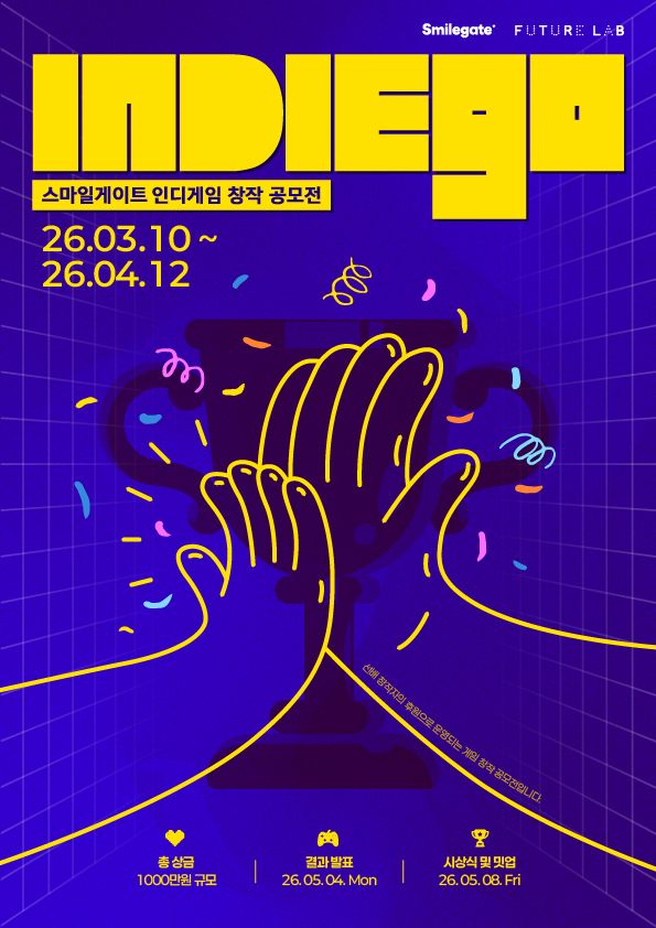 스마일게이트 퓨처랩이 총상금 1,000만원 규모 인디게임 창작 공모전 '인디고(IndieGo)'의 참가자를 모집한다고 19일(목) 밝혔다.