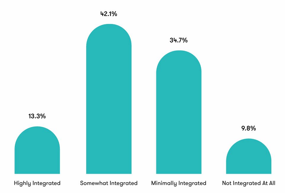 리포트에 따르면 응답자의 13.3%는 AI가 업무에 '고도로 통합'되어 있다고 답했으며, 42.1%는 '일정 수준 통합'되어 있다고 응답해 총 55% 이상이 생성형 AI를 실질적으로 활용하고 있는 것으로 나타났다.